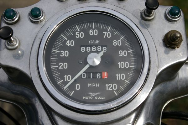unless you happened to be lucky enough to have a camera along. While out today on a ride into the Berkshires, friend Brian O’Neil suddenly pulled off on to the berm of Route 41 near Sheffield, MA. Given the fact he was riding a 1972 Moto Guzzi Eldorado, my first thought was a mechanical issue, but that wasn’t the case at all. Brian wanted me to pull out the camera that’s always in my saddlebag and get a picture of his odometer, which was about to hit a milestone.