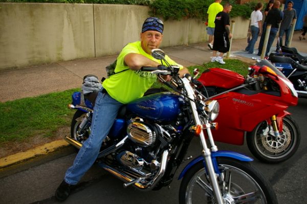 Jimmy Broadbrook of Prospect rode in on his blue 2007 Harley-Davidson Sportster 1200 Custom.