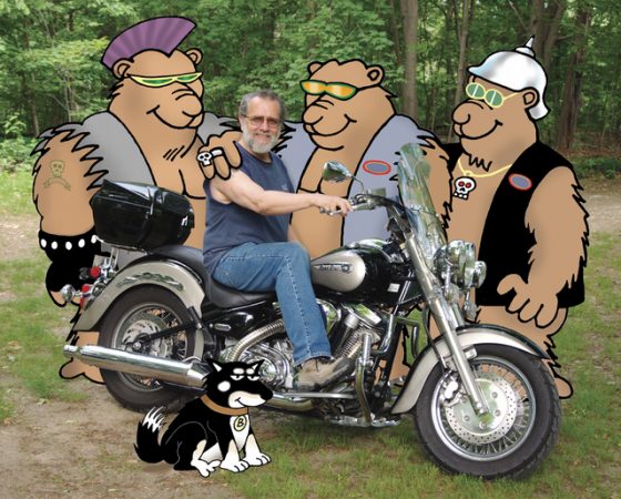 Jamiol spent 34 years writing and cartooning for “The Motorcyclist’s Post” before retiring. The idea for the books germinated prior to that after an old family dog passed away. He did a cartoon of him on motorcycle. “I started developing a few characters and I ended up with 10 characters. I did two centerfolds for ‘The Motorcyclist’s Post.’ They looked really cool.”