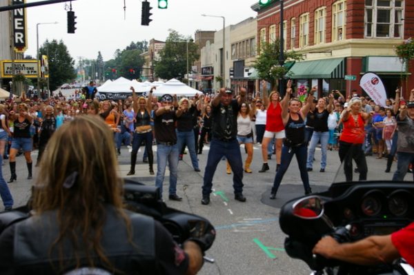 A flash mob broke out Thursday night at the Main Street Marketplace in Torrington with 75 bikers, who had rehearsed for more than four months, putting on an enthusiastic show for the crowd. The purpose was to promote the Torrington Thunder bike night on Sept. 28. Here’s what the flash mob looked like: