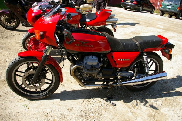 Earlier, at Toymaker’s Cafe in Falls Village, we’d seen another Moto Guzzi that truly shined – a 1982 V50 Monza owned by Mike Visovsky of Golden’s Bridge, NY. Gorgeous.