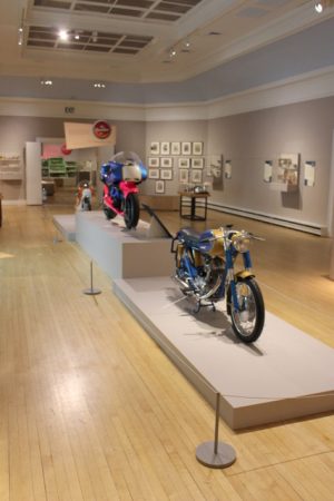 Of course, the bikes provides the focal point with the Britten (shown below) getting the top spot on the podium – as it should. Only 10 were ever made, and the one the Berkshire Museum has on display was once part of the Guggenheim Museum’s “Art of the Motorcycle” exhibit in 1998.