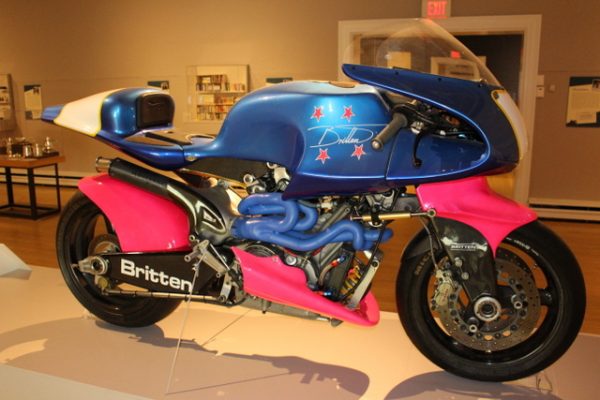 A friend had tipped me earlier that the exhibit included a rare Britten race bike, so I contacted the museum’s director of communications, Lesley Ann Beck, who hooked me up with owner Jim Hunter for an interview. All I needed