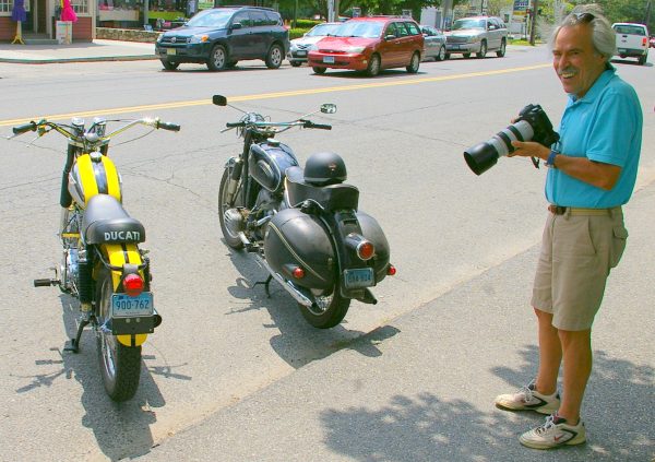 The former owner of a New York advertising agency and a life-long professional photographer, Halby is shooting and stockpiling photos for a coffee table book that will feature the bikes and bikers of Kent, the town being a destination spot for motorcyclists from Connecticut and New York. “I started to go to Kent last year and just thought the bikes were such beautiful graphic objects,” said Halby, who divides his time between homes in West Cornwall and Manhattan.