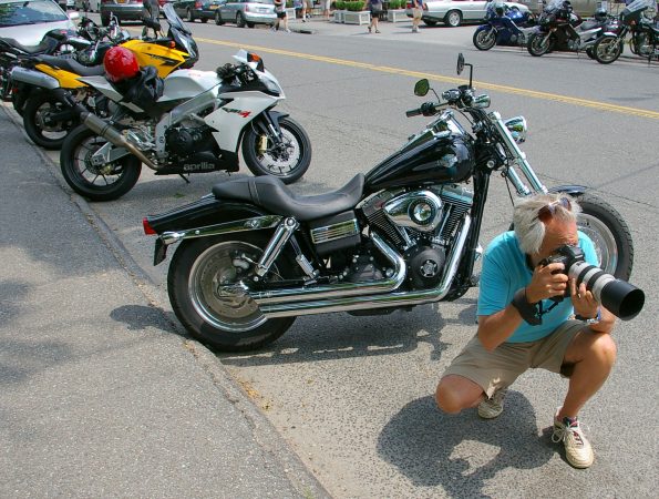 Dressed in shorts, a golf shirt and tennis shoes, Gary Halby looked like a typical Sunday tourist as he walked the sidewalks of downtown Kent at midday snapping photographs, except for the fact he held a high-end Canon 5D Mark camera with a 70-300mm telephoto zoom lens in his hands. That he was focusing solely on motorcycles and their riders also suggested a more serious purpose.