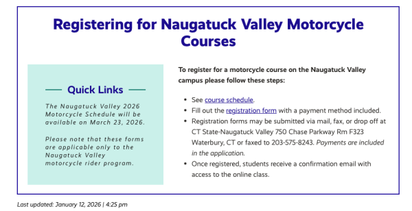 Melissa Lamar, CT State’s director of media and public relations, explained, “CT State is finalizing discussions with the Connecticut Department of Transportation, our motorcycle training partner. We value our ongoing partnership with the Connecticut Department of Transportation and appreciate the collaboration as we work together to support a high-quality, accessible training program.”