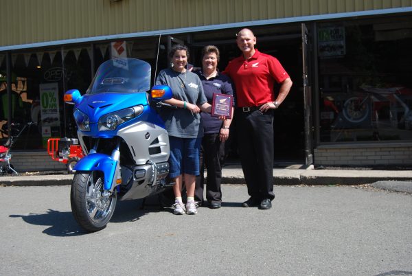 Adams of Oakville has been honored by Honda for being a dealer for 30 years. Honda rep David Wells visited to present owners Cindy Wright (left in picture) and Terry Radauskas with a plaque for the achievement.