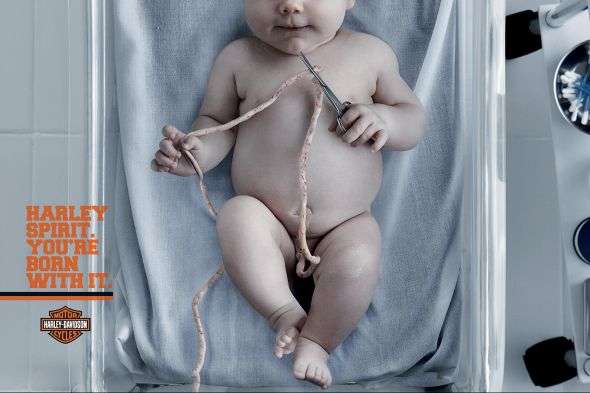 Part of Harley-Davidson’s allure here in the U.S. may come from the fact that the company’s motorcycles are “American-made,” but the brand’s attitude translates anywhere. The Moma Propaganda advertising agency in Sao Paulo, Brazil has created some print ads that drive that point home. Here are two examples: