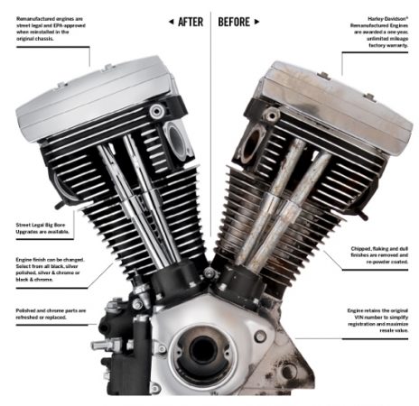 What’s required is that a Harley dealer remove the engine and ship it back to the factory and then reinstall it upon its return. Engines are usually returned within two weeks – new on the inside and out. The VIN stays the same.