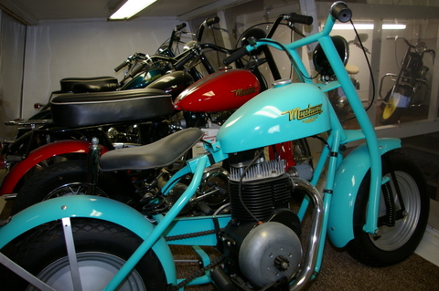they’ve been slightly downsized. Is a Mustang is a miniature motorcycle or a juiced mini-bike in a motorcycle guise? It’s a question that collector Al Simmons presumably doesn’t ponder. He just adores them.
