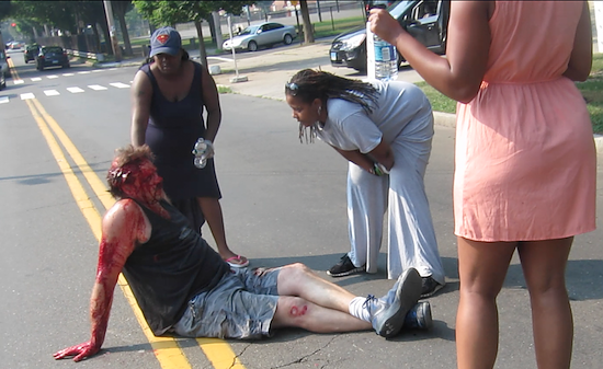 The injured man is white. Those coming to his aid are black. The uninformed yet accusatory explanations that accompany the picture on at least two Facebook posts begin innocently by saying the injured man’s “the owner of a New Haven, Connecticut motorsports shop.”