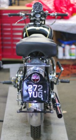 He said that his top speed was around 130 mile per hour. Not bad for a bone stock motorcycle in the 1950s.