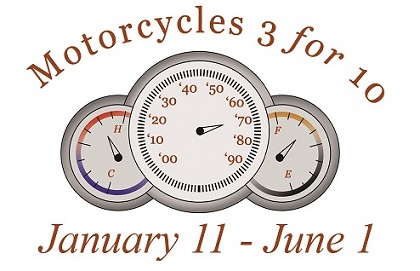The “Motorcycles 3 for 10” collection features a 1904 Columbia motorcycle, a 1934 Indian 4 and a 1978 Rokon RT 340 Enduro.