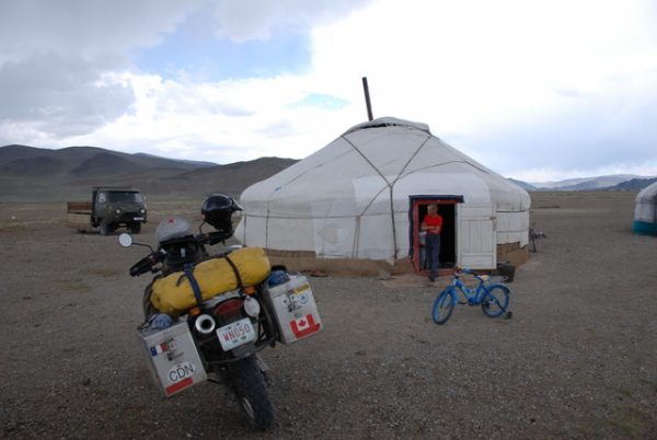Getting the plastic tank welded was one of the few repairs required during the trip. “Luckily, the bike was mostly problem-free throughout the entire trip,” he said. There were, as expected, some flat tires to fix, and he would “learn along the way.” In Mongolia, a water pump shaft seal failed and he had to replace it. “I was kind of glad it went. I had been carrying the bloody part for four years,” he said.