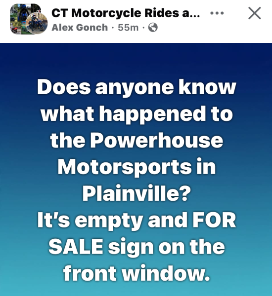 When Powerhouse Motorsports exited isn’t known. The store’s most recent post on Facebook was on Nov. 15, 2025. RIDE-CT was alerted to the situation by a Facebook post on Saturday on the CT Motorcycle Rides and Events page. Alex Gonch inquired about the store’s status.