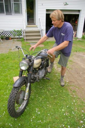 As we were getting ready to leave, Brien Hadley walked up and asked about our bikes. Brien’s a stonemason who lives across from the Southfield Store. He reported owning a Harley-Davidson Sprint and said he’d be glad to show it off.
