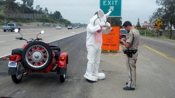 Officer Adam Griffiths let the bunny off with a warning. He also reminded the bunny that riding with obstructed vision is dangerous on a freeway.