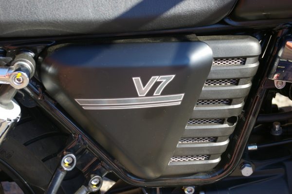 The original V7 came out in 1967 and Moto Guzzi built it through the 1972 model year. It was a large bike for the era, but that’s no longer true. With only 744cc and 50 horsepower (a 12 percent increase from prior years), the bike isn’t a pavement burner, rather a peppy and pleasant ride that has more than sufficient power – once you get it on the road.