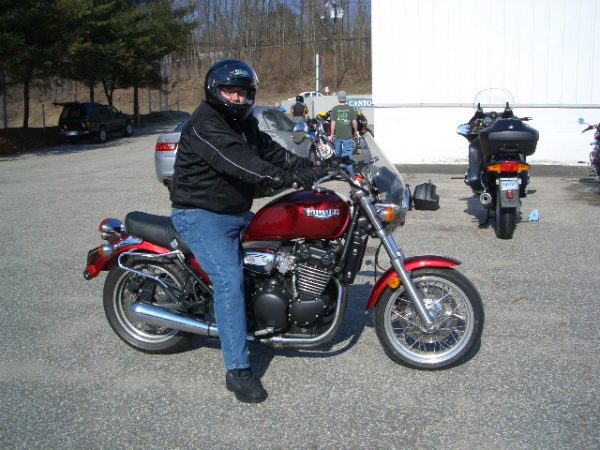 The two-wheel itch had firmly taken hold a few weeks earlier when I stopped at (the now long-gone) Canton Cycles in Winsted where friend Carl Foster was picking up his BMW from service. On the showroom floor was a used ’99 Triumph – an 885cc Legend with low miles and sparkling burgundy paint job.