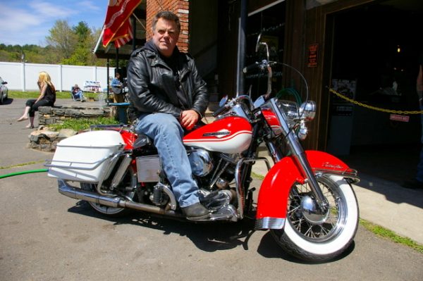 An April party marking the move of Keith Bruno’s motorcycle repair business in Winsted, known as The Shop, gave RIDE-CT.com the opportunity to meet Mike White of Canaan, who showed up on his 1965 Harley-Davidson Panhead.