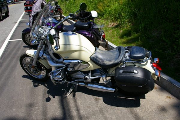 A couple of riders from Massachusetts had come south of the border and were seated at an outdoor table at the cafe. Mike Diana of Ashford, MA was on a 1998 BMW R1200C. Looking at the wear in the saddle, I probably should have asked him how many miles he had on the bike.