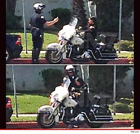 on his chopper as he took a bunch of photos … then allegedly let her go without ticketing her.