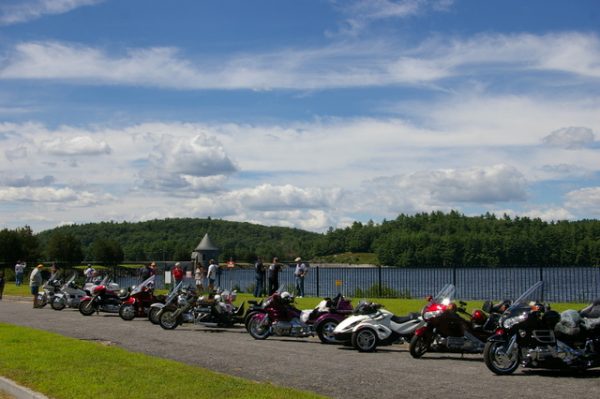 Trike riders from up and down the eastern seaboard, including all the way from Florida, began gathering in Torrington, CT today for the fourth annual TrikeTalk.com North East Rally. Early arrivals were taken on a guided tour by event organizer John Luciano, which included a stop at Barkhamsted Reservoir (above).