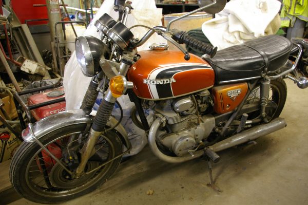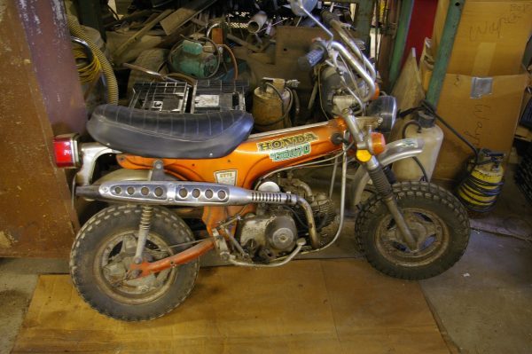 Knowing that he’d never ride again, Phil wondered how much the bikes might be worth and how he might sell them. So, on Sunday afternoon, joined by Honda expert Neil Tolhurst of New Hartford and friend/collector Gary Randall of Harwinton, we went to look at the Gold Wing as well as at a 1973 Honda CB350. When we got inside he building, there was a third bike, an old Honda Trail 70.